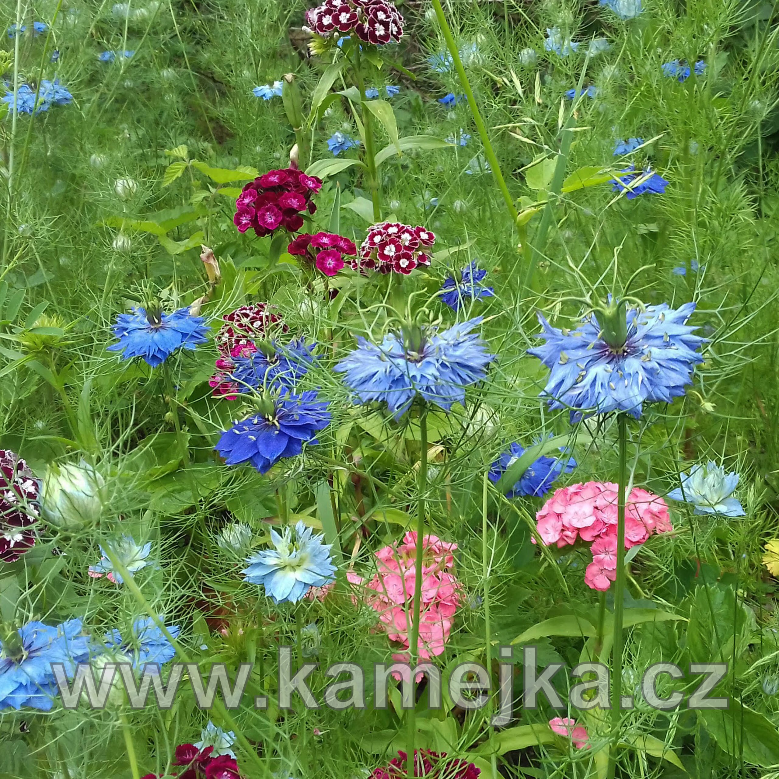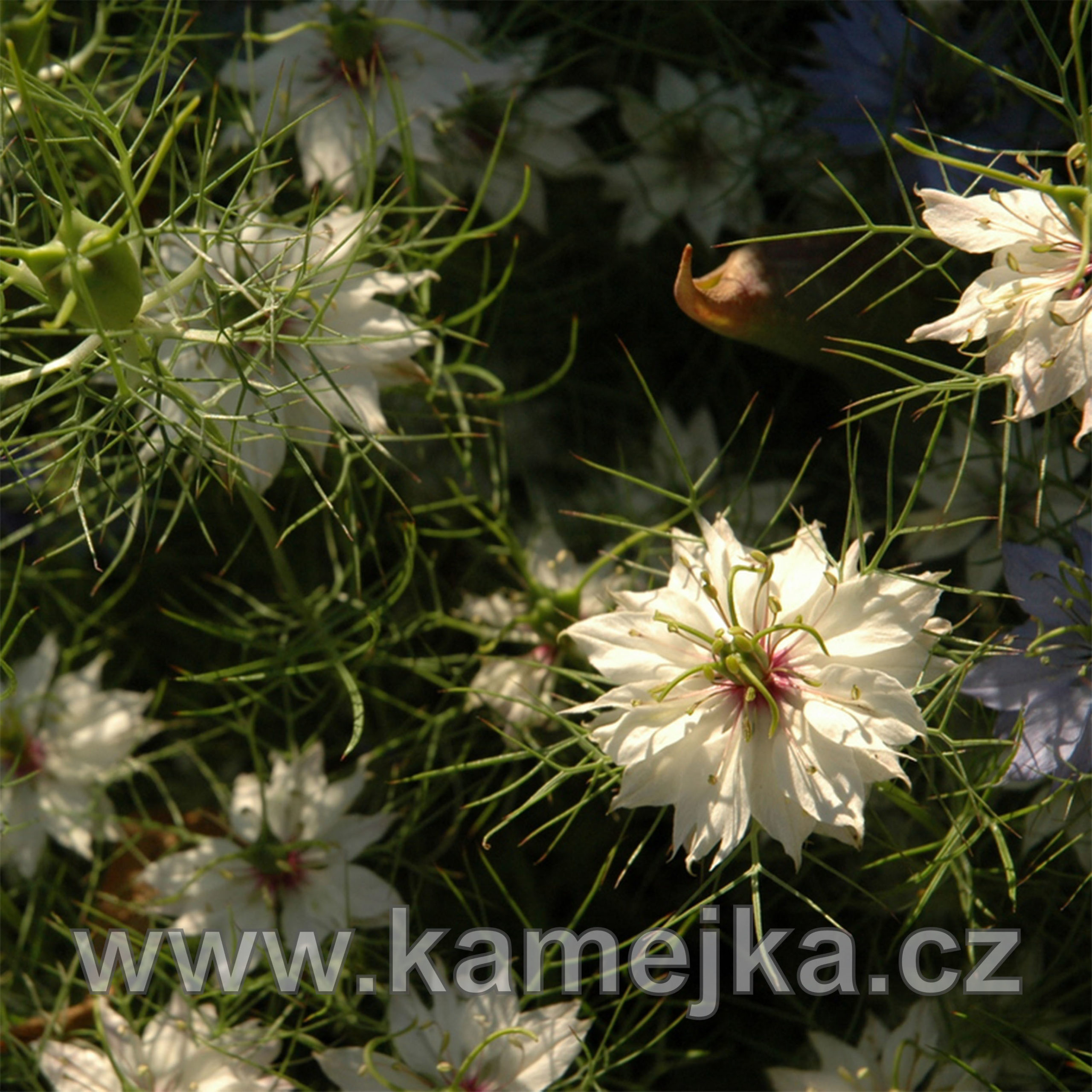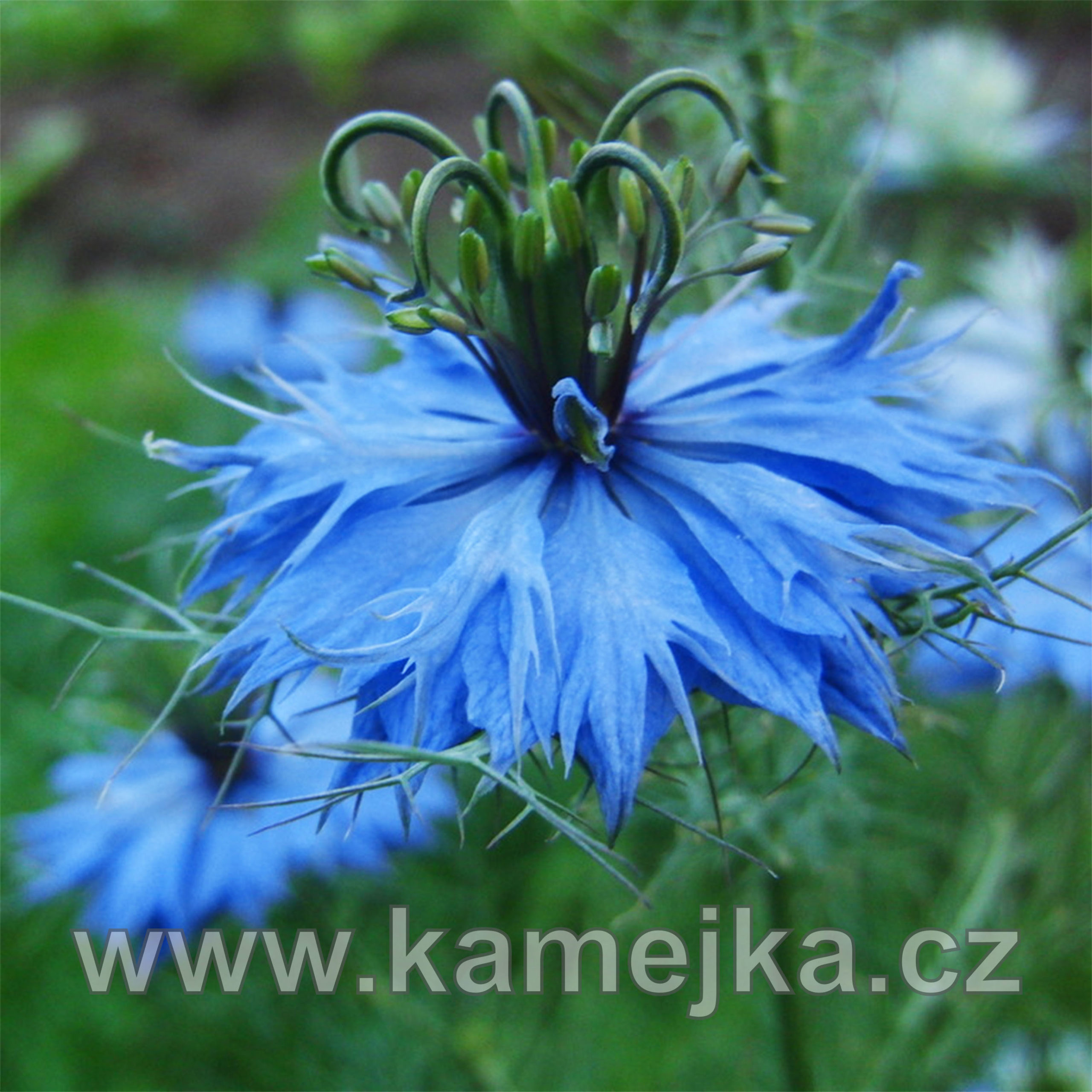 Jednoletá bylina, 20–40 cm vysoká se zpeřenými listy. Pochází ze Středozemí a jižní Asie. Kvete od června do září modrými nebo bílými květy podepřenými zpeřenými listeny. Plodem je nafouklá tobolka, která je dekorativní do suchých vazeb. Rostliny jsou dostupné pouze na jaře jako semenáčky nebo od léta do podzimu v podobě semen na příští rok. Cena je za 5 ks.