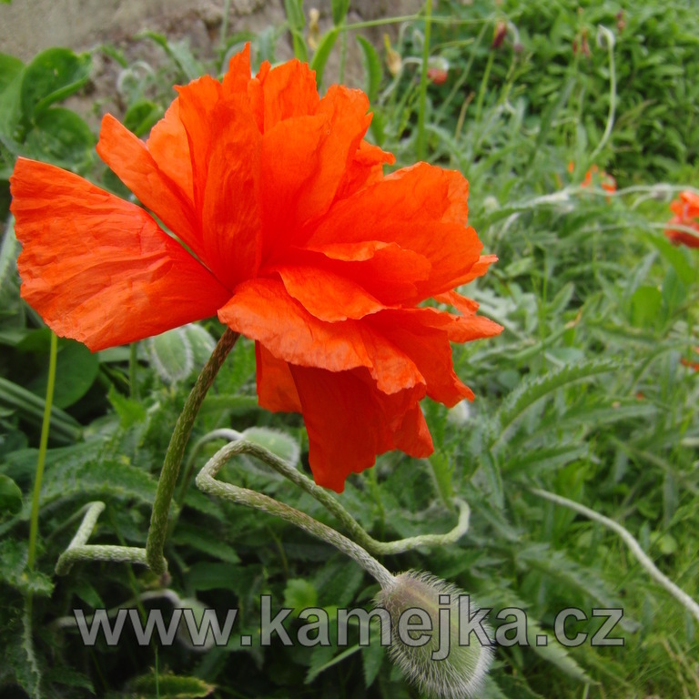Drsně štětinatá rostlina tvoří přezimující přízemní růžice listů, z nich koncem května vyrůstají 60-100 cm dlouhé květní stvoly, nesoucí jednotlivé velké květy průměru okolo 10 cm lososově oranžové s okraji zvlněnými či roztřepenými. Romantické máky kvetou poměrně krátkou dobu a po odkvětu zatahují, listy se opět objevují v září. Mák vyžaduje hlubokou živnou zahradní zem a plné slunce. Hodí se do trvalkových záhonů. Dodáme na objednávku do dvou týdnů.